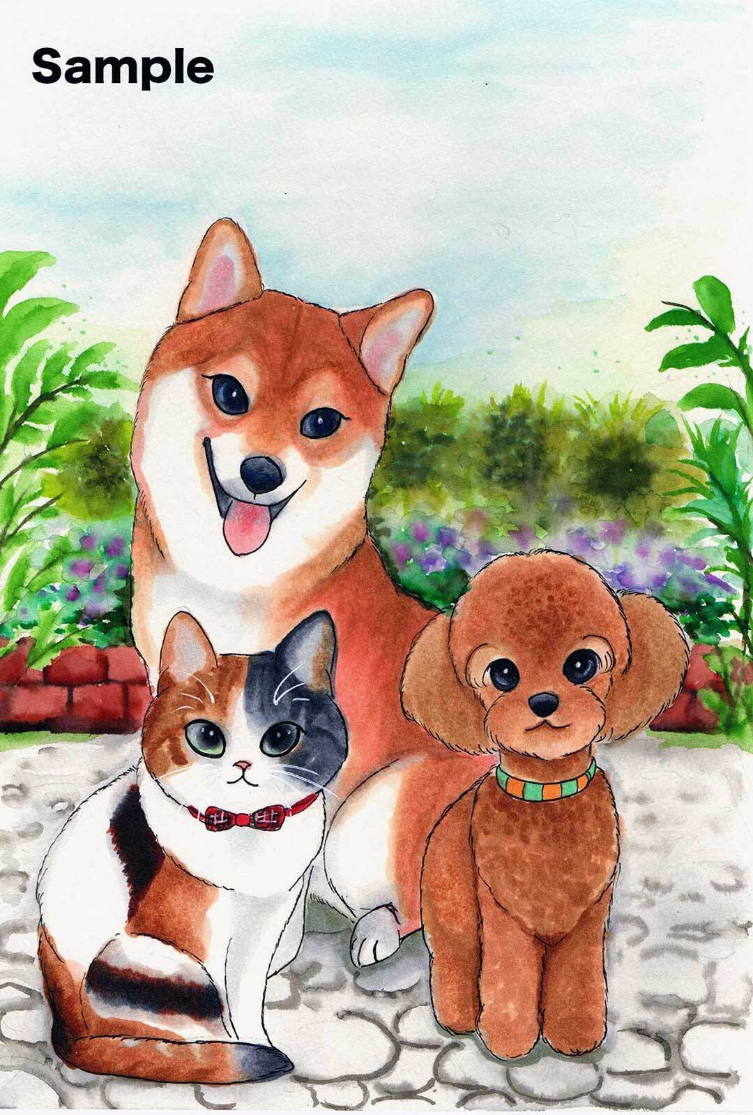 こちらはA4サイズ・最大3匹まで描けるタイプのオーダー作品です。