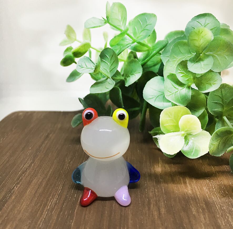 小さなガラス細工のカエル。カラフルな色合いが楽しい置物です。